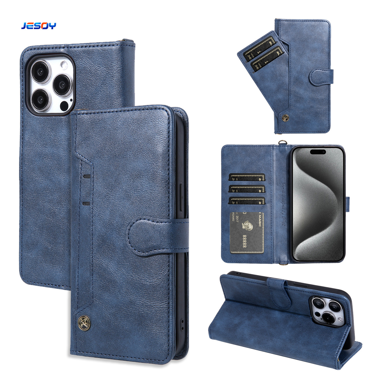 The JESOY JS-LC06 leather phone case comes in five different colors, including black, brown, blue, gray, and dark green. This variety of colors allows you to choose the perfect color that matches your style and personality. The logo on the phone case may be embossed and customized according to your preferences.
