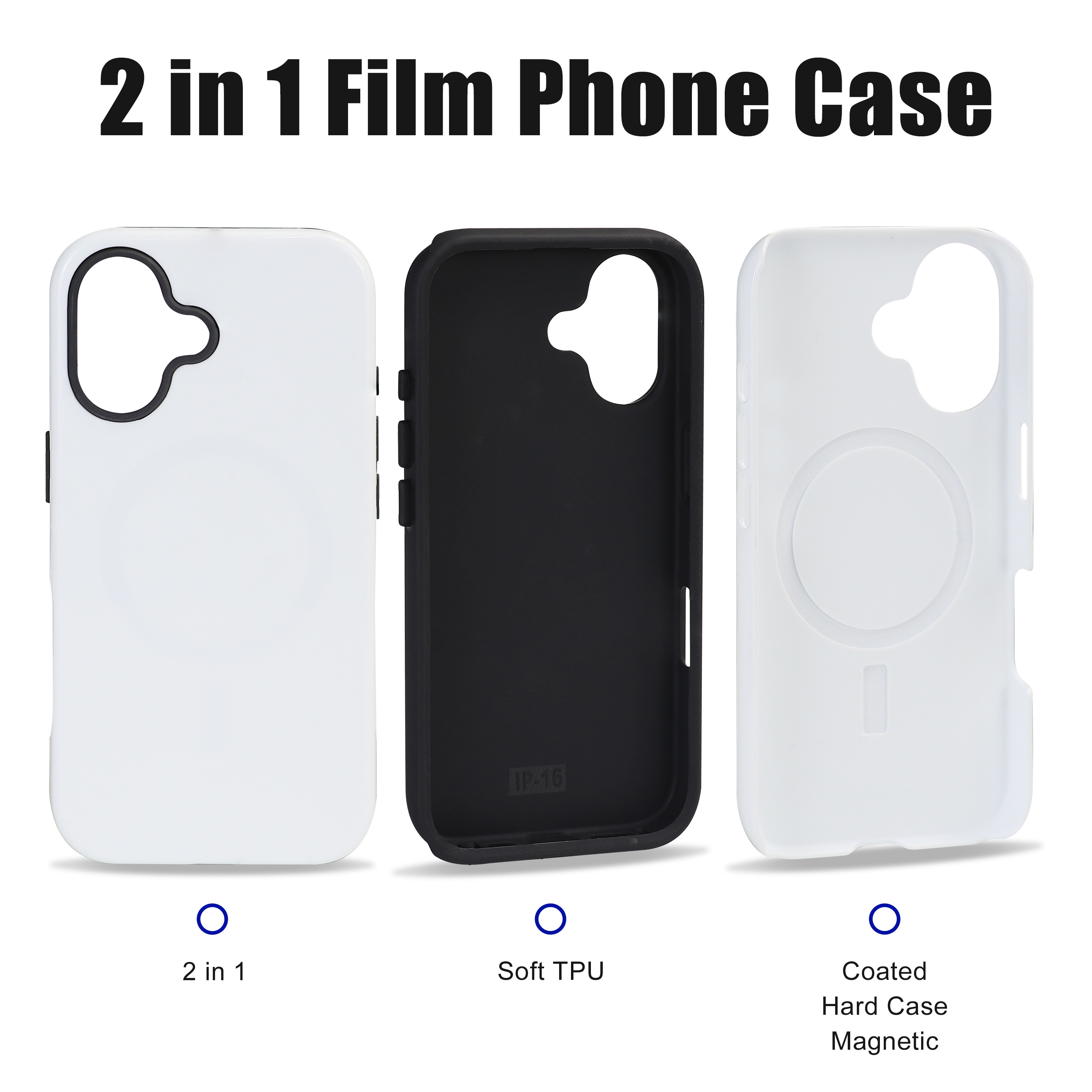 Sublimation Film 2 in 1 3D Mobile Phone Case Covers Blank Custom Compatible with iPhone